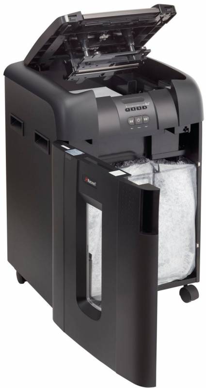 - Шредер Rexel Auto+ 600M с автоподачей (секр.P-5)/фрагменты/600лист./80лтр./скрепки/скобы/пл.карты/CD